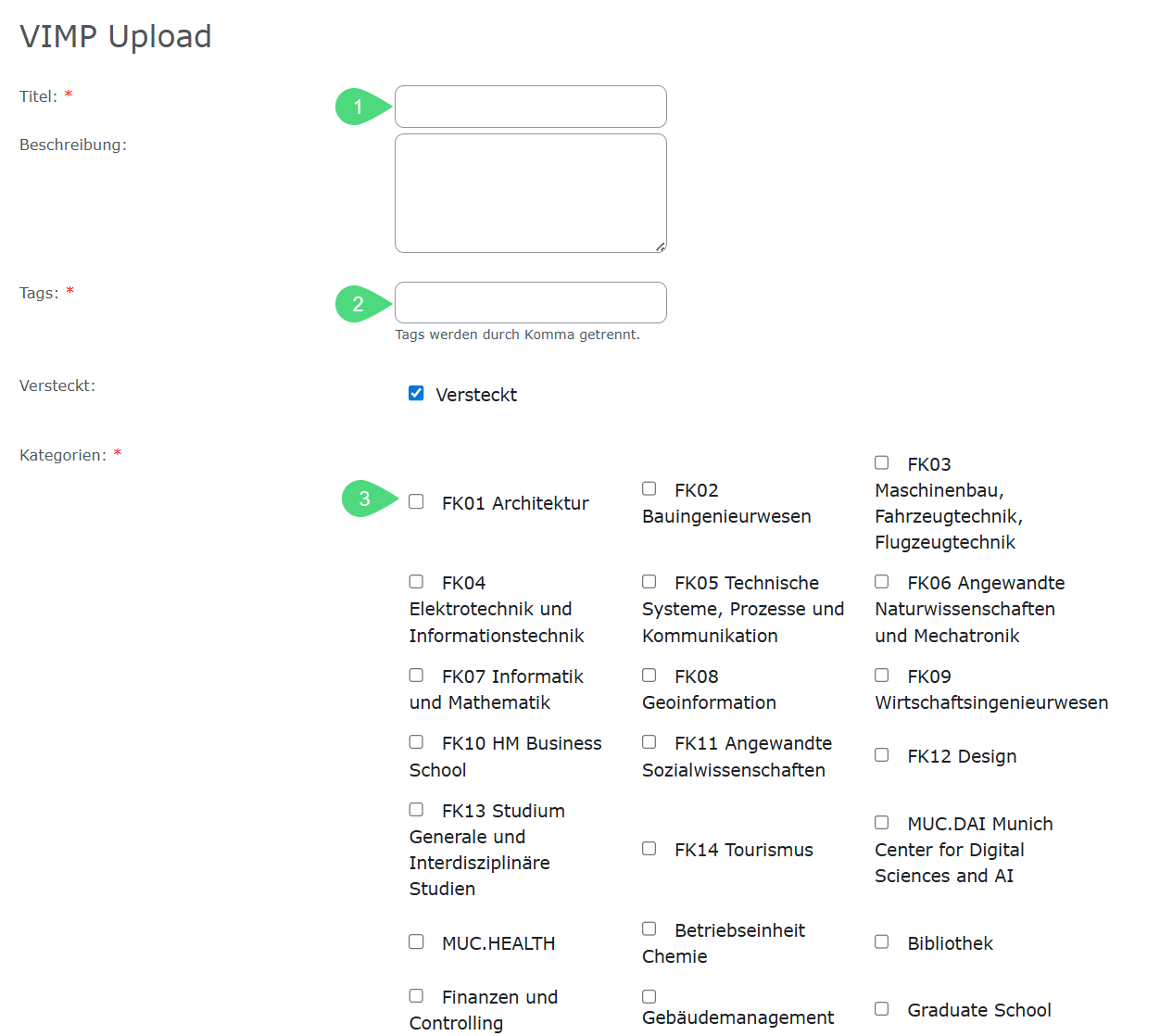 (2) Geben Sie einen, oder mehrere Tags für Ihr Video an (z.B. Maschinenbau, Lehre, FK10)