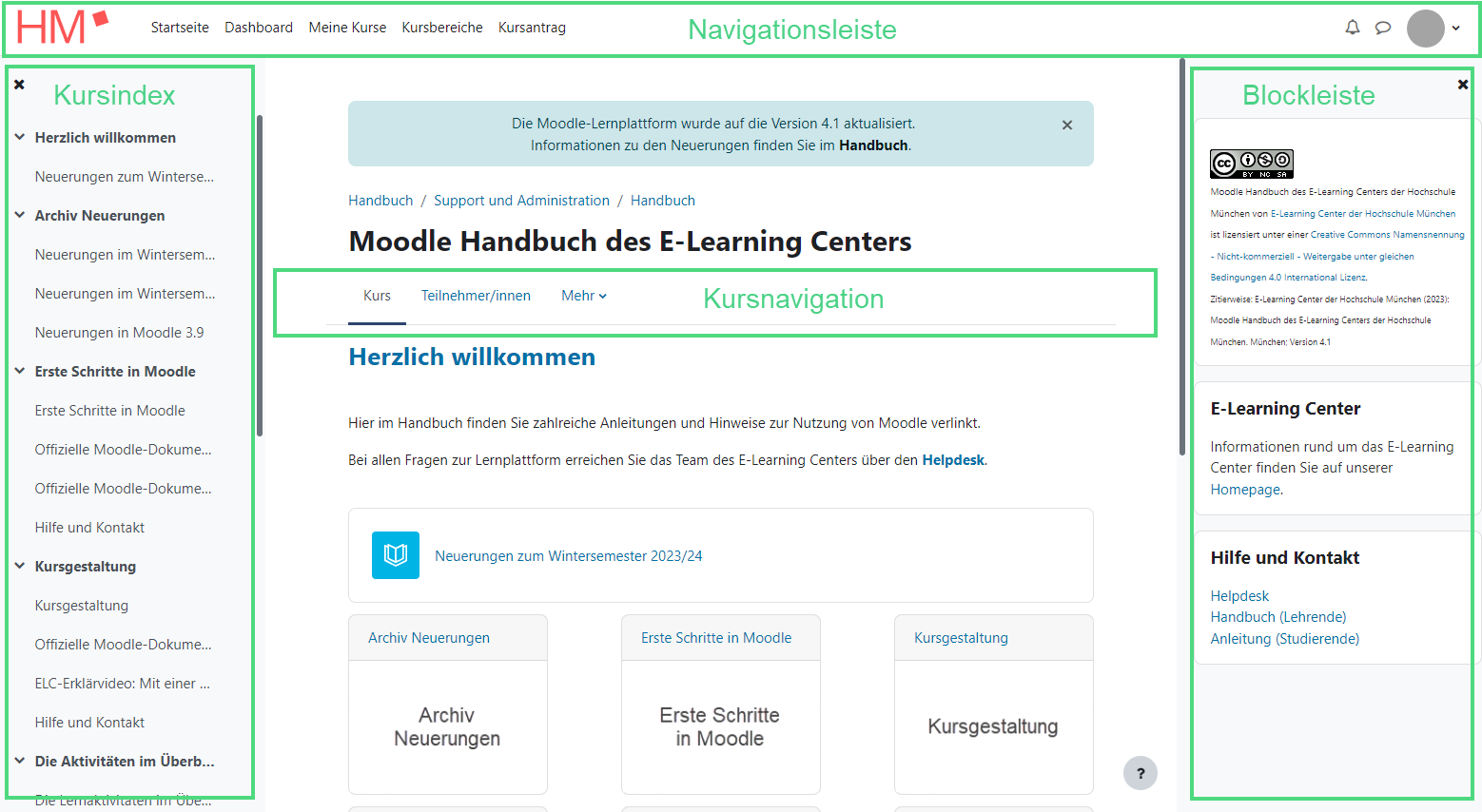 ausgeblendet werden. Über den Kursindex kann man innerhalb eines Kurses