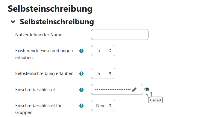 Den Einschreibeschlüssel können Sie sich durch ein Klick auf das Augensymbol anzeigen lassen.